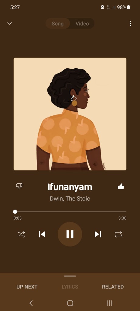 Last weekend, I discovered a new love song! Ifunanya by Dwin, The Stoic. The most striking quality of this song is the subtlety. It doesn’t try hard to impress the listener with unnecessary riffs and mouthy lyrics. Ifunanya is an unbothered river flowing over smooth peebles. It doesn’t announce itself like waves crashing against rocks because it knows you will still be drawn to it. With everything happening in the world, we need songs like Ifunanya more than ever so we can sway along to the tune, close our eyes, and remember when the world was smaller and we could understand every bit of it.